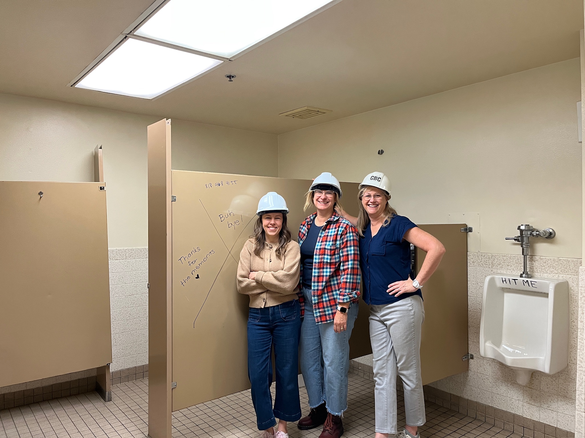 Pictured are three of the Campus Design team members on demolition day. We started the morning with a prayer led by Pastor Jon and some sledgehammers before handing the work over to the professionals.